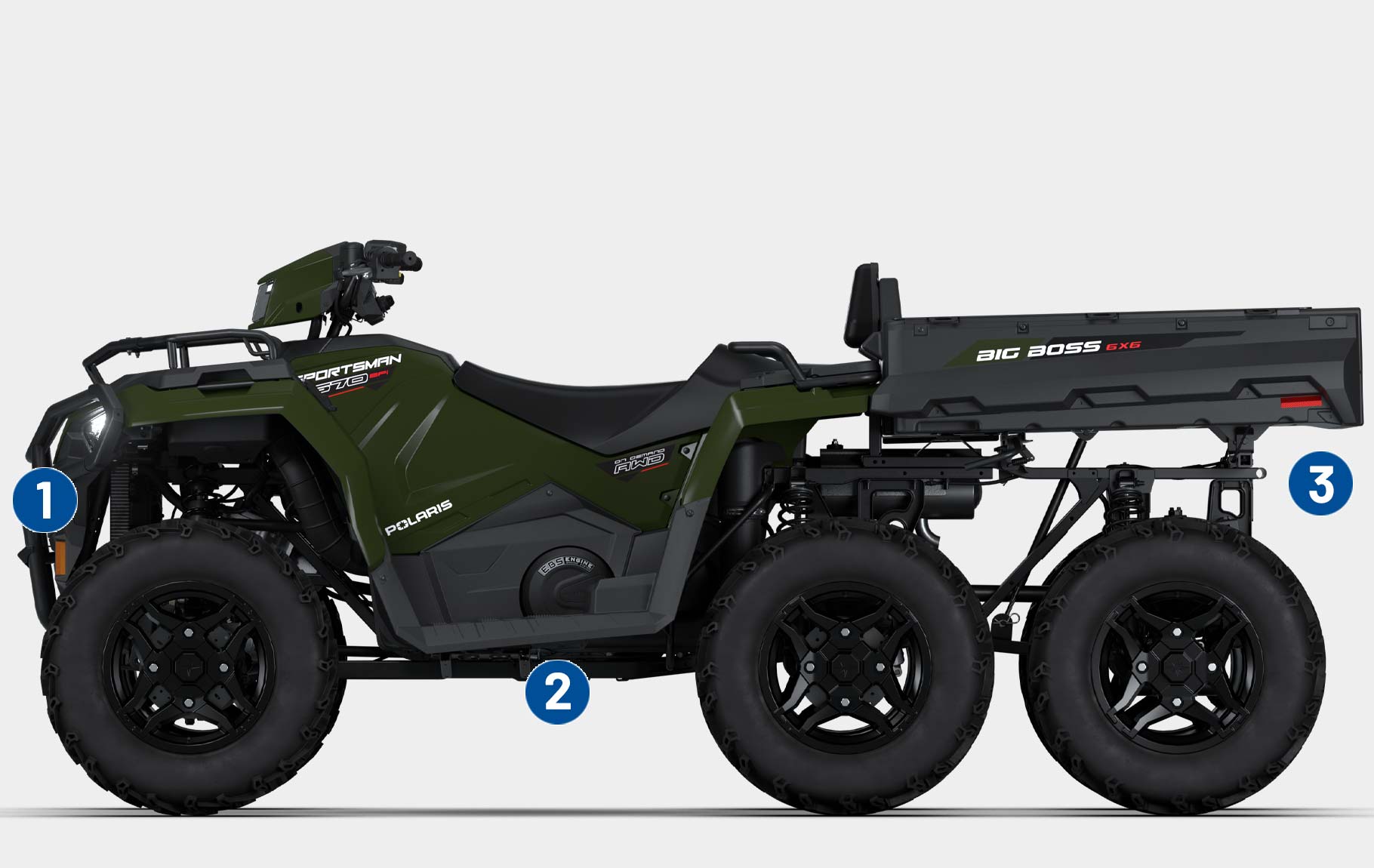 次世代スポーツマン6x6 570は、大胆な新デザイン、強化されたシャシー、強化された6x6 ATV機能を装備し、よりスムーズな走行と優れた快適性を実現している。